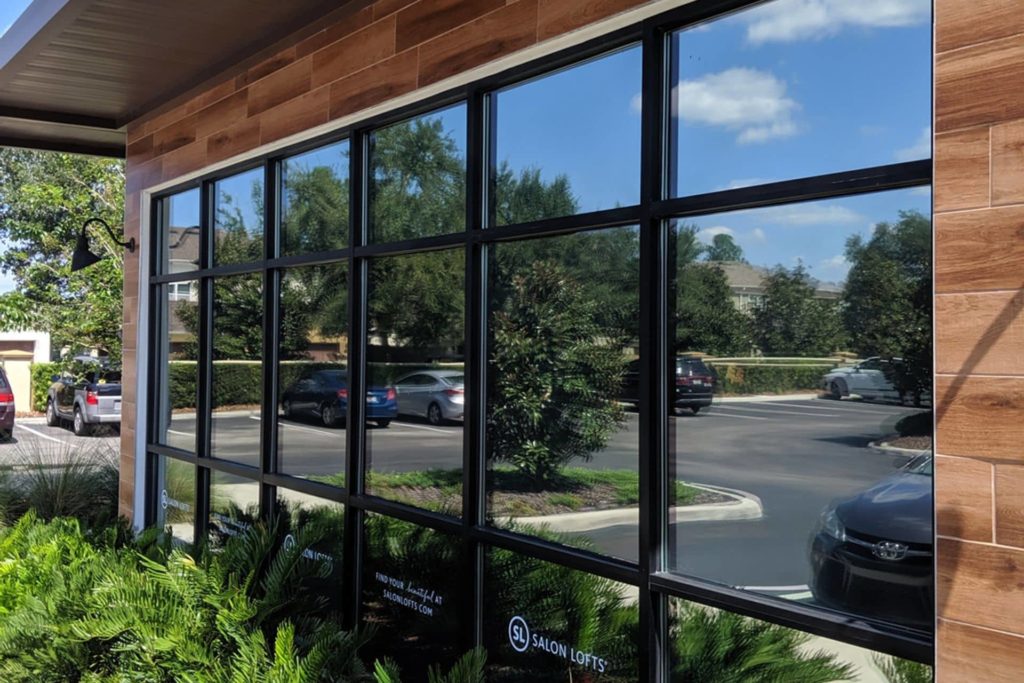 Commercial films range from very subtle to more tinted looks, and we can show you options so you can choose how you want your glass to appear from the street.